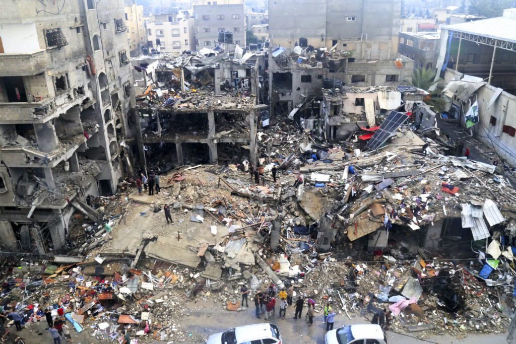 Palestinians look for survivors after an Israeli strike on a building last night in Jebaliya refugee camp, Gaza Strip, Tuesday, Nov. 14, 2023. (AP Photo/Mahmoud Abo Salamah)